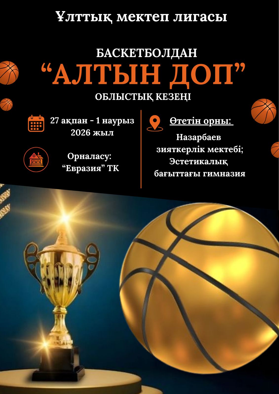 2026 жылдың 27 ақпан – 1 наурыз күндері Назарбаев зияткерлік мектебі және эстетикалық бағыттағы гимназия мектебінің спорт залдарында 9 – 11 сынып оқушылары арасында баскетболдан «Алтын доп» жарысы өткізілді.